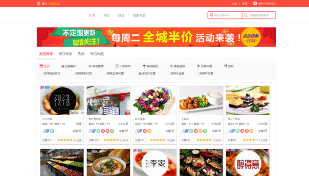 提供商家分类和活动内容进行筛选。默认根据定位地址由近到远默认排序方式显示商家信息
