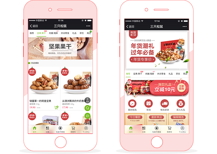 作为知名坚果品牌,松鼠商城主要针对微信用户。